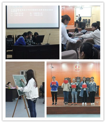 通过初赛,共有8支代表队进入了决赛。决赛分为“知识竞答”、“商品猜猜猜”和“你画我猜”三个环节。在每一个环节中,参赛队伍都认真参与、积极作答,为观众展现了一场激烈的决赛;在有奖竞猜活动中,同学们积极参与,现场气氛活跃。比赛最后,三位评委分别为获奖队伍颁奖,并对比赛做了点评,他们指出此次活动很有实际意义,让同学们学到了很多法律知识,懂得了如何更好地在日常消费中维护自己的权益。