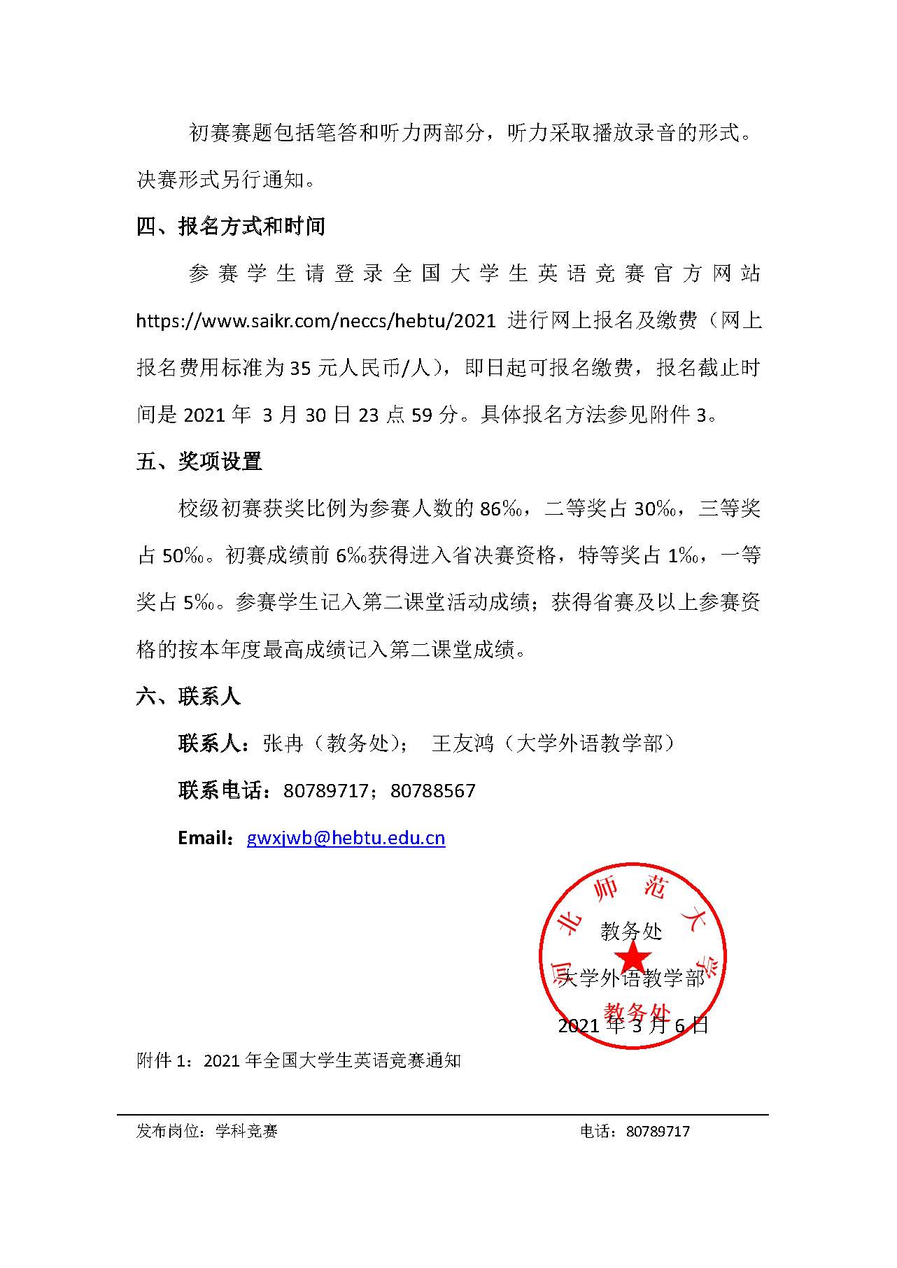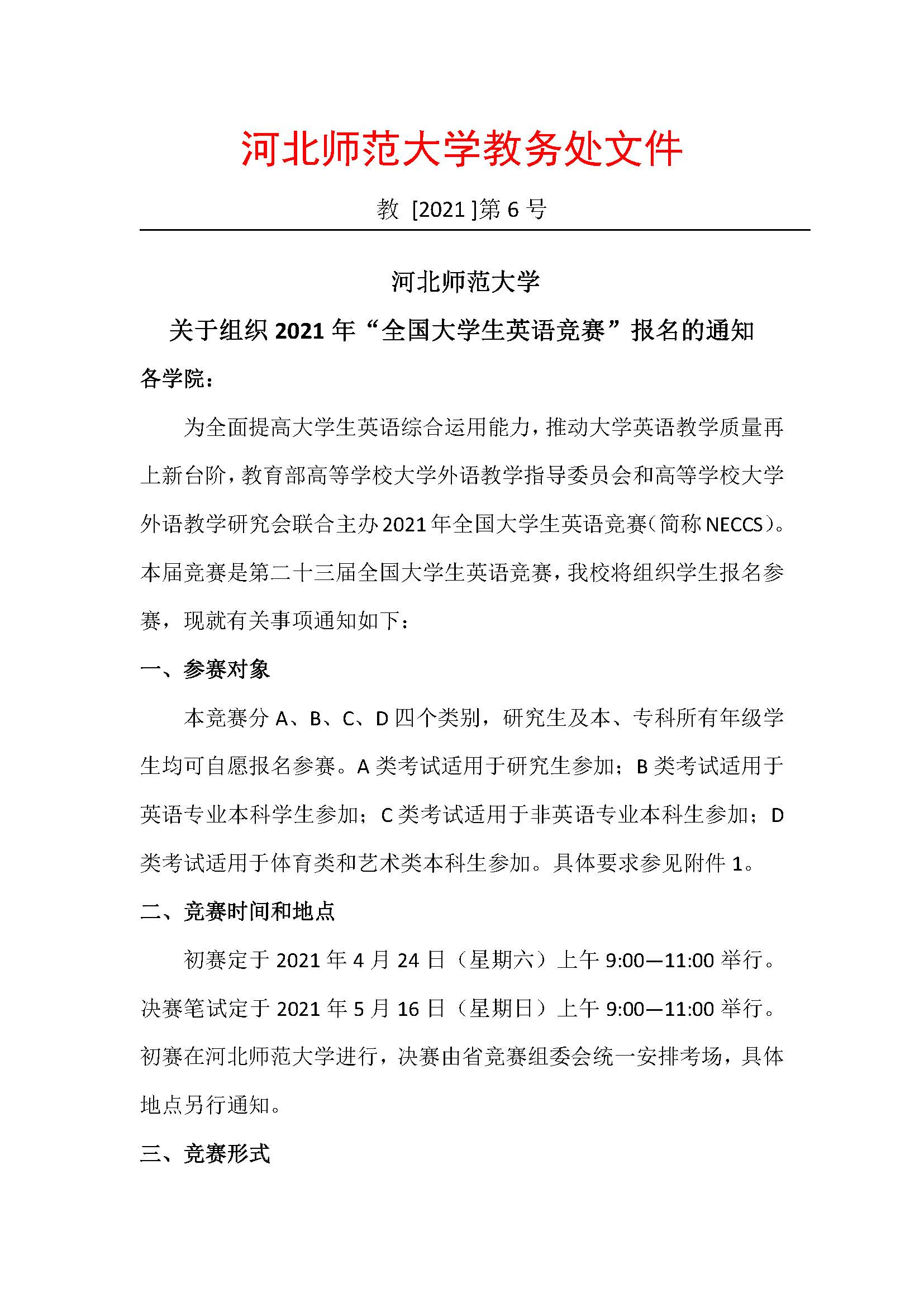 关于2021年全国大学生英语竞赛的通知