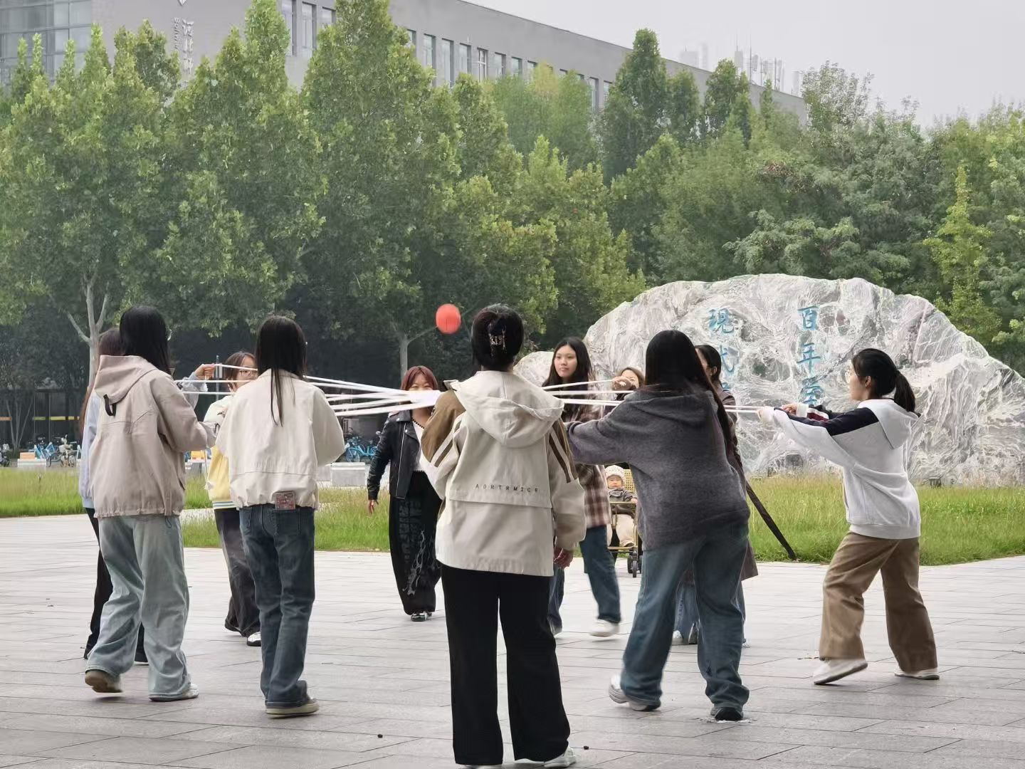 赛场上,“众星捧月”考验平衡与默契,细绳托举小球,步步为营;“毛毛虫竞速”激情四射,同场竞技,于默契配合间驶向胜利彼岸;“龙行天下”环环相扣,凝神屏息,在相接处见证团结之力;“火车快开”节奏欢腾,连成列车步伐铿锵,齐心协力冲向终点。一张张照片定格了飞扬的青春,汇聚成一曲蓬勃跃动的青春交响。